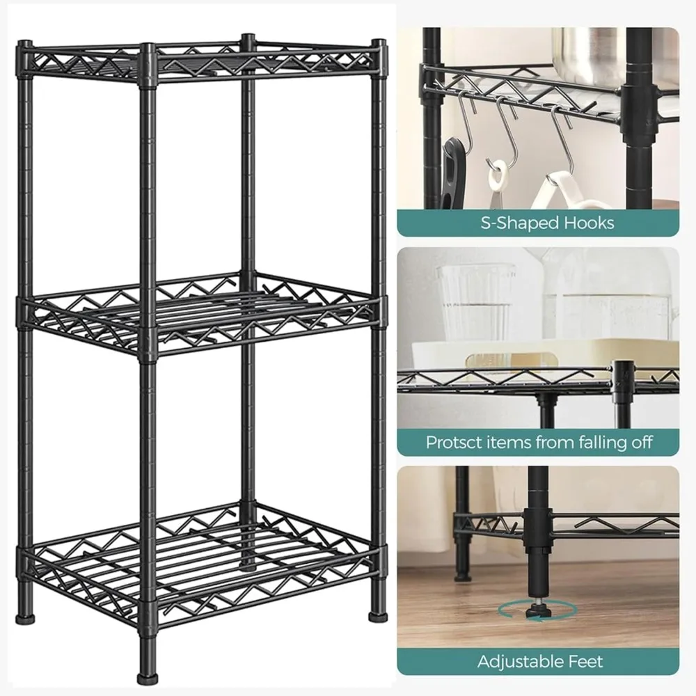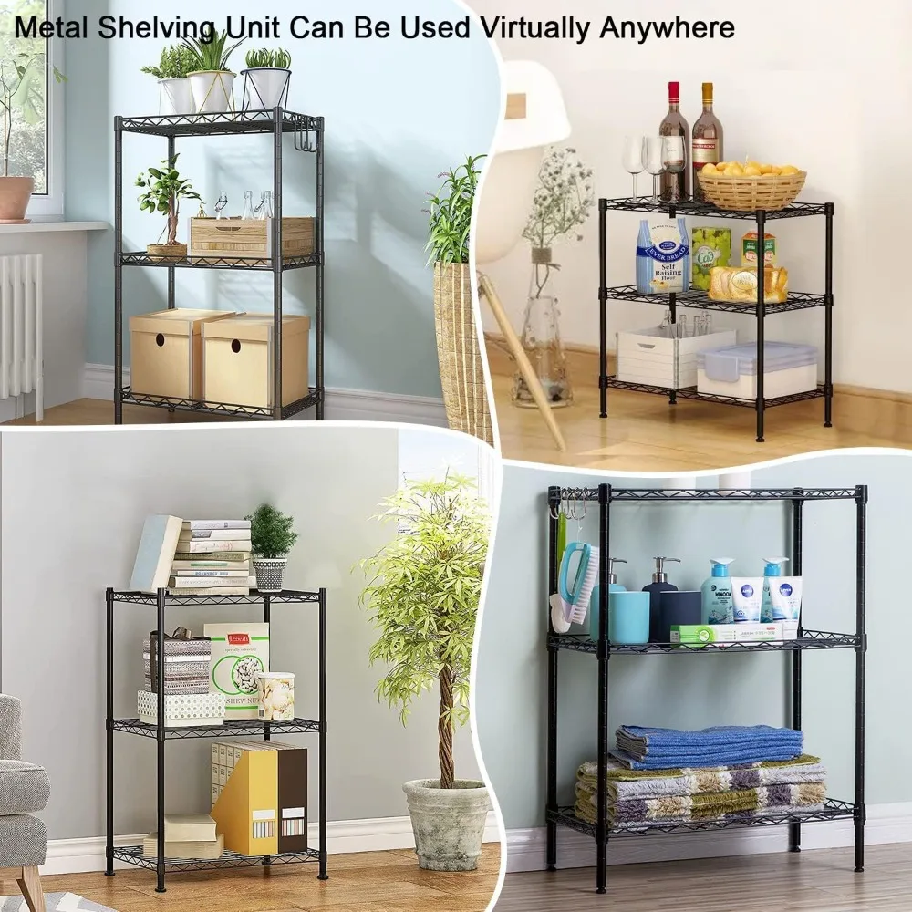 - 【Versatility and Convenience】 The 3-tier wire rack provides convenient storage space and easy access to tools and supplies. This versatile metal shelving unit can be utilized in various settings such as the kitchen, bathroom, garage, outdoor shed, and more. It’s ideal for organizing tools, clothing, books, toys, plants, and displaying items that occupy space in your home or office.